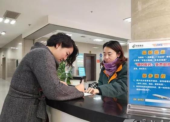 市民在恩施市民之家,通过邮政速递窗口办理邮寄业务。