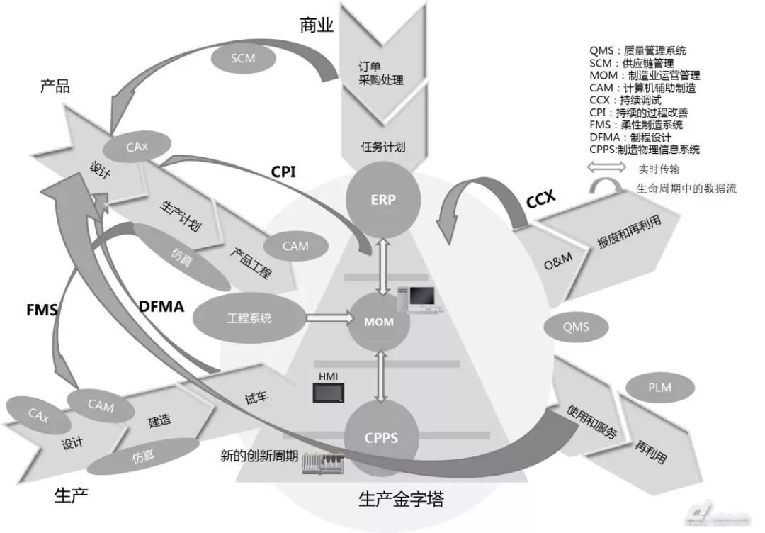 不仅要梳理数据的传输,也要明白数据的流向—即用途,也是要服务于生产运营的。图1是来自NIST关于智能制造相关的标准,包括从底层的现场总线、信息模型、数据模型、设计、制造各个环节,以全景形式给了我们以参考。