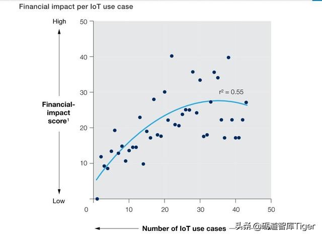 我们早些时候曾指出,许多公司尚未将其物联网计划转移到小口径试点项目之外。造成这种现象的原因各不相同,但我们经常听到的一点是,最初的物联网使用案例很少会产生那种可能会鼓励公司继续推进其他人的重大财务影响。事实证明,不仅仅是少数用例可能不那么令人印象深刻。我们的调查显示,前15个左右的物联网用例通常只有适度的回报 - 平均回报率持续上升,直到公司实施了大约30个用例(图表2)。换句话说,公司实施的第20个物联网用例可能比第10个具有更大的财务影响。