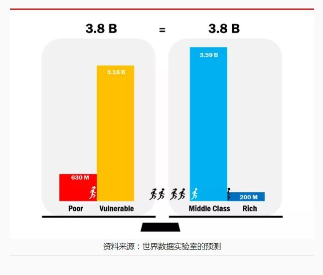 截至去年9月,世界上有50%以上的人口,即约38亿人口有足够自由支出,这部分人被视为“中产阶级”。而大约相同数量的人口生活在贫困或易受贫困影响的家庭中。因此,2018年9月标志着全球的转折点。在此之后,世界上的大多数人不再是穷人和弱势群体,这标志着一个中产阶级多数的新时代的开始。