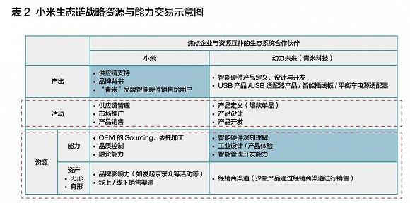 以新三板上市公司动力未来为例,小米生态链战略如表2所示。