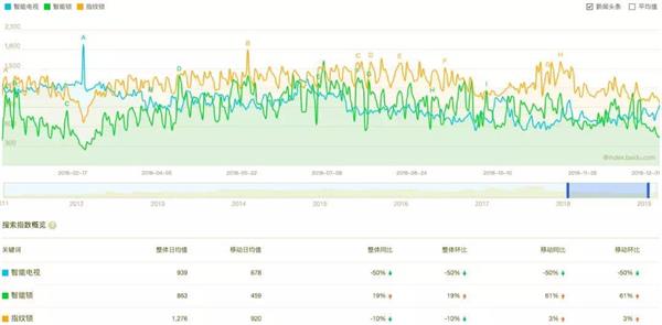而与关键词“家电”相比,智能锁指数已遥遥领先。这说明,近年来智能锁的热度以明显高于其他智能家居产品。