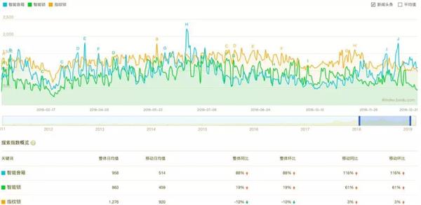 针对这些问题,今天我们通过百度指数的大数据对智能锁行业进行简单的分析,来看看行业的春天是否真的到来了?