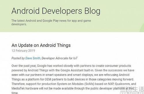 可惜的是在两年之后的当下,官方博客发文称,谷歌旗下的Android Things平台将会重新调整关注重心,宣布其会转为专注于智能设备的平台,更准确说是智能音箱和smart displays(可以看做一个加强版智能音箱的产品品类)。