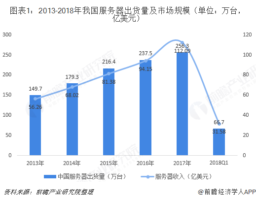 2017年中国服务器出货量和市场规模分别为256万台和112.1亿美元,同比增长7.79%和19.05%,从行业分布来看,市场的主要驱动力仍来自于互联网/云计算和电信行业。未来五年,云计算、5G、AI、IOT将成为推动服务器增长的主要驱动力。