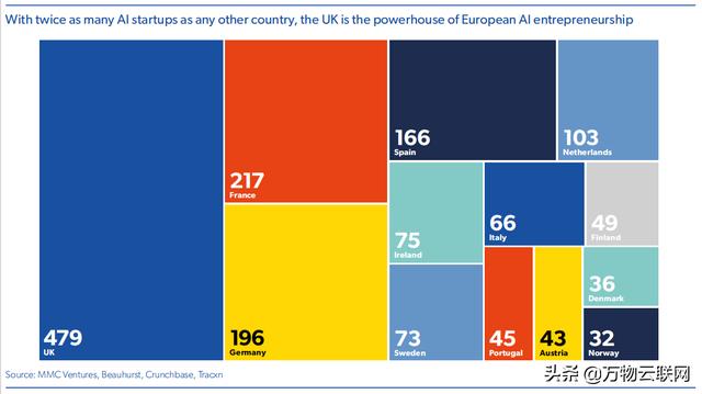 根据MMC的报告,在欧洲,英国是大多数人工智能初创企业的所在地。