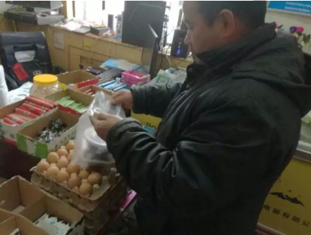 坎久干村顺民超市的老板刚好也路过电商服务站,看到站长这么认可后,也当即决定拿几份先做做试验,可以的话以后超市也放这种凉皮。
