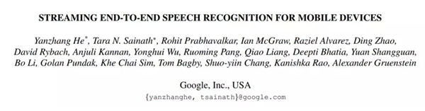 论文:Streaming End-to-end Speech Recognition For Mobile Devices