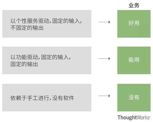 借助一个平台,将软件的服务个性化的创造,这将是未来的发展趋势。在麦肯锡的分析报告中,我们可以看到,各个企业或者行业,都在第三个阶段做了不同的探索和努力。
