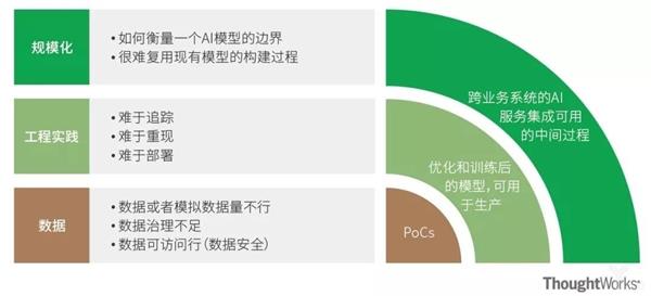 没有良好的工程实践来保证质量和流畅性:对于常规的应用软件开发我们有TDD、自动化测试、CI/CD等成熟的工程实践做保障;但是在智能服务这一块,无论是编程开发、还是服务构建,都没有成熟的工程实践,也没有良好的基础设施支撑,非常依赖于构建这个服务的数据工程师的个人能力,导致在实施过程中,问题难以复现,难于定位。