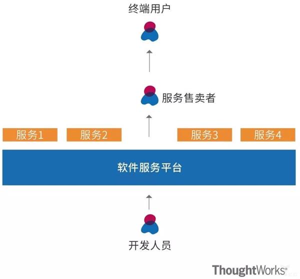 这是目前最常见的软件平台的运作方式,开发人员开发出了对应的软件服务后,提供给终端用户使用,虽然会有销售售卖该服务。这种方式,好比是拿着一个锤子找钉子,而不是给钉子快速制作一把合适的锤子再去售卖。
