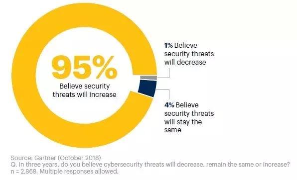 95%的受访IT高管认为信息安全威胁将会上升。面对信息化给企业带来的利好,增加了不法分子对信息安全的危害,而信息安全威胁也将持续上升。做好信息安全防护工作是重中之重。