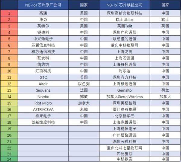 目前参与5G物联网建设的NB-IoT芯片和模组厂家,在全球已经超过20家。其中NB-IoT芯片源厂家共有18家,而NB-IoT模组厂家共有23家。
