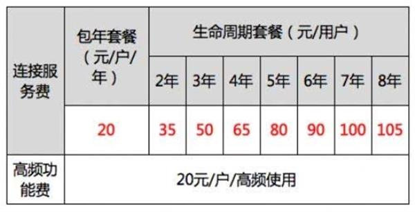 2018年时,中国电信和中国移动给出了NB-IoT设备的网络资费情况,其中中国电信的包年价格是20元每户,而中国移动的包年服务则推出了20元和40元两个价位的选择。