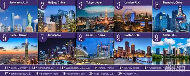 在前20的排名中,纽约被评为全球城市,同时也被视为未来四年内硅谷以外的领先技术创新中心。