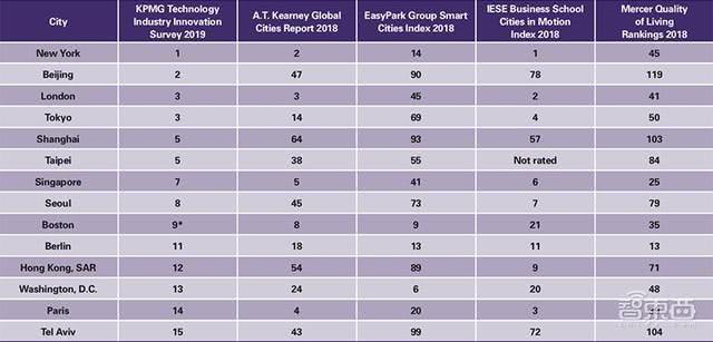 而在欧洲方面,排名第3与第11的伦敦与柏林在各参数间的表现都较为稳定,尤其是柏林,其在毕马威的调查和其他四个指数中所有参数的排名都在第11和第18之间。柏林作为未来技术创新中心的潜力可能被低估了。