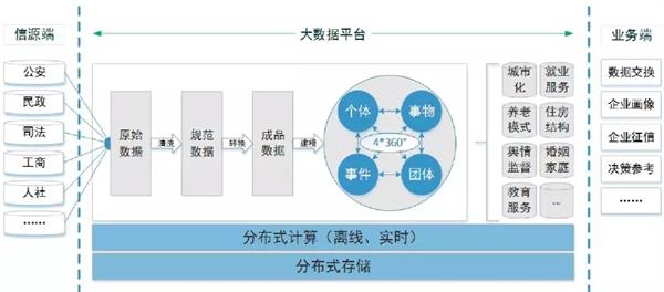 结合合肥市本地化数据, 基于大数据平台的数据仓库技术, 有效对数据结构进行组织, 针对政务大数据的特点, 在本项目中提出了4360数据组织模型, 该模型的设计既考虑到政务数据的物理含义, 使其所反映的物理世界在数据空间中建立起易理解、易关联的对应关系, 又针对大数据处理、人工智能并行计算的特点, 使得数据组织方式能够更有效的清晰数据关系, 深度挖掘数据关联。