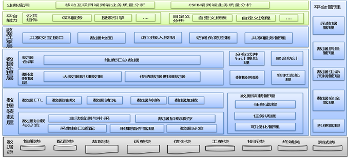 基于大数据网管运营支撑的探索和研究是以4G运营为驱动力的,运营商应转变原有单一支撑网络分析的模式,将支撑能力向市场及流量运营、终端运营延伸,同时将4G业务支撑从电信传统模式向互联网新模式推进,通过信令数据的采集、跨域平台的互通、大数据的聚合分析,实现4G业务支撑能力的全面提升。