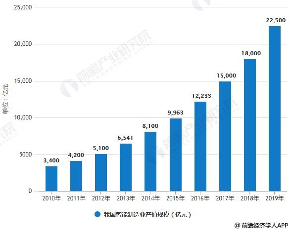 2010-2019年我国智能制造业产值规模统计情况及预测