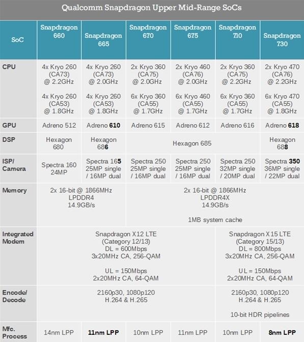 高通9日发布三款中端移动处理器Soc,分别是骁龙665、骁龙730和骁龙730G,性能升级,首次用上8nm工艺:其中 730G增强了游戏体验,GPU速度比常规版快15%。