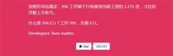 从3月27日开始,截止本文发稿,GitHub上面的项目996.ICU的Star数量已经超过18万,这场由程序员发动的轰轰烈烈的公开反对996工作制的运动,早已突破互联网圈层而传递到整个社会的职场舆论中,引发了职场从上到下的大讨论,在各大社区均有激烈争辩,从微博到知乎,再到脉脉,均随处可见。随之而来的各大国内浏览器对于996.ICU网站的屏蔽,又一次将这波讨论推上了高潮。