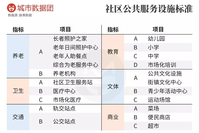 为了比较沪杭两市的社区公共服务设施完善程度,我们设计了一个标准: