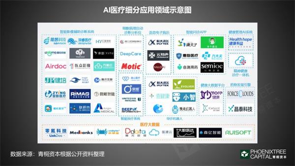 同时,青桐资本观察到医疗信息平台数据在C端变现的路径并不通畅,主要在于用户对病症描述普标不准确,无法为患者提供精准对接服务。在AI医疗领域,结合疾病和健康大数据,针对不同疾病建立个性化的诊疗方式,为患者提供健康行为指导成为商业化的另一方向。