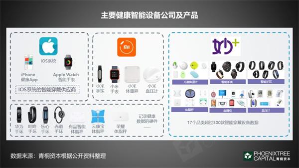 健康数据来源主要分为两类:一类是在线问诊平台,搜集用户健康和轻问诊信息,这平台以好大夫在线、平安好医生为代表;另一类是健康智能设备。其中,苹果、小米、华为通过建立软硬件智能健康产品线,进行健康数据采集,是中国市场健康智能设备出货量前三的厂商。