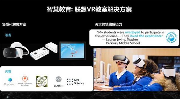 下面一个例子,联想在英国调研了超过500名教师,90%以上相信VR会对课堂教学产生积极影响。我们使用内嵌谷歌Daydream的Lenovo Mirage Solo VR设备,为师生提供丰富的现实生活的虚拟体验。