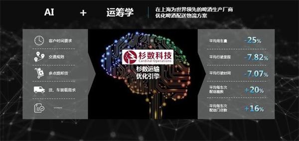 联想创投投资的杉数科技,为一家世界顶级的啤酒生产商解决在上海市配送自动化的问题。通过收集客户时间要求、交通规则、装载和卸货、车辆、物流历史数据等信息后,基于人工智能和运筹学的杉数运输优化引擎分析处理后,平均用车量每天减少四分之一。