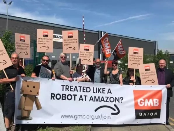 图4:2018年5月,亚马逊仓库工人在德国举行抗议活动