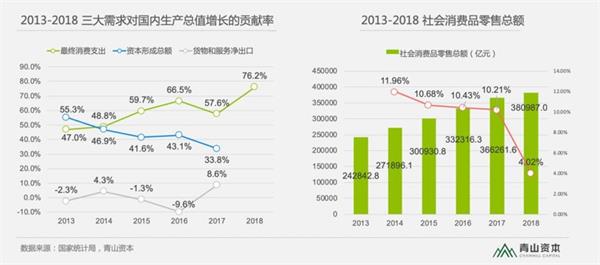 从消费、投资、出口“三驾马车”对中国经济增长的贡献率来看,2018年最终消费支出贡献率已达76.2%,连续五年成为经济增长的第一动力。