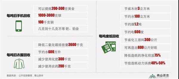 每吨旧物(旧手机、旧衣服、废纸)的回收情况