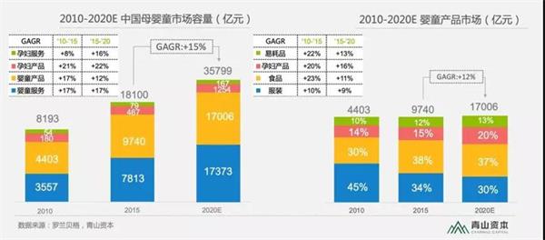 根据罗兰贝格数据,2015年我国的母婴童市场容量已经达到1.8万亿,并且将以每年15%的速度增长,预计2020年将达到3.5万亿。