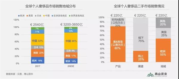 全球个人奢侈品市场销售地域分布与销售情况