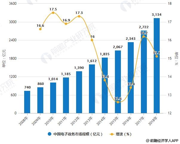 2008-2018年中国电子政务市场规模统计及增长情况预测