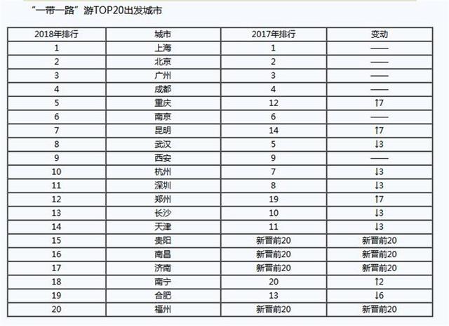 榜单数据显示,上海、北京、广州、成都、重庆、南京、昆明、武汉、西安、杭州等10个城市,是前往“一带一路”沿线国家城市旅行的主要出发地。