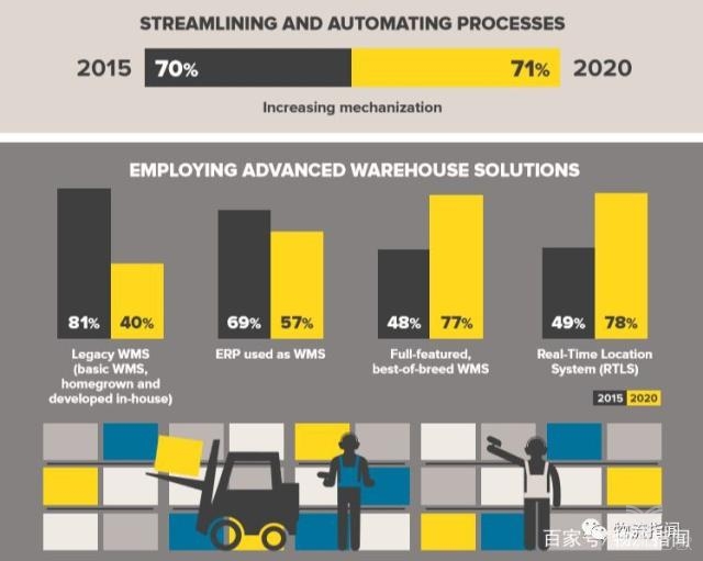 调查受访者表示,这些举措反映了向最佳仓库管理系统和实时定位系统(Real-Time Location Systems,RTLS)的转变,这些系统实时跟踪货物的下落,并将取代传统的操作。