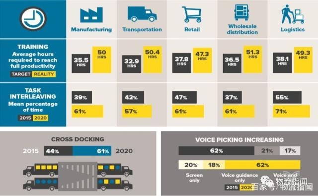 今天,新员工需要大约49.5小时的培训才能达到全面生产力。为了将这个时间减少到36.2小时,该行业正在从未进行语音的定向拣选转向在未来五年内进行语音和屏幕导向的库存拣选和补货。