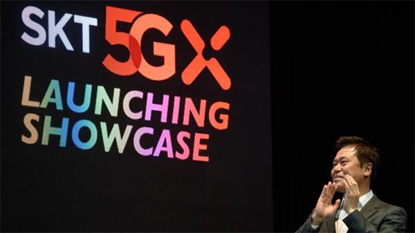 SK电信CEO Park Jung-ho,在5G移动服务的发布会现场