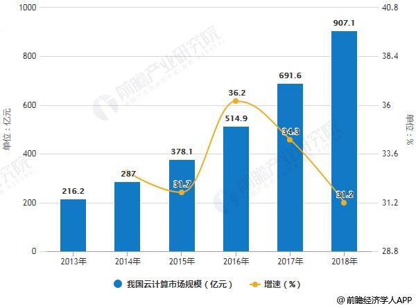 2013-2018年我国云计算市场规模统计及增长情况预测