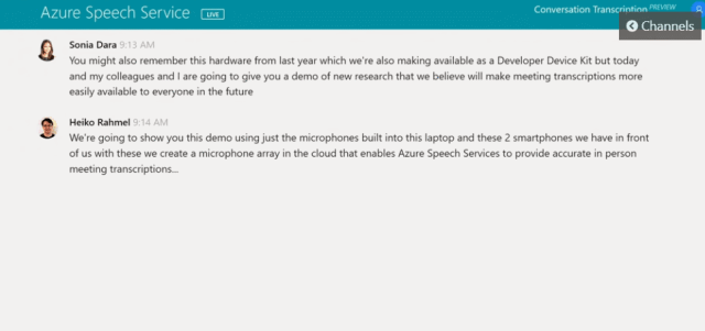 本次大会上,微软还新推出了基于Azure的新服务——认知语音服务,这项功能可以实时将对话转录成文本,并且能够根据不同行业的专业对话进行调整,自动识别专业词汇,而且精度很高。