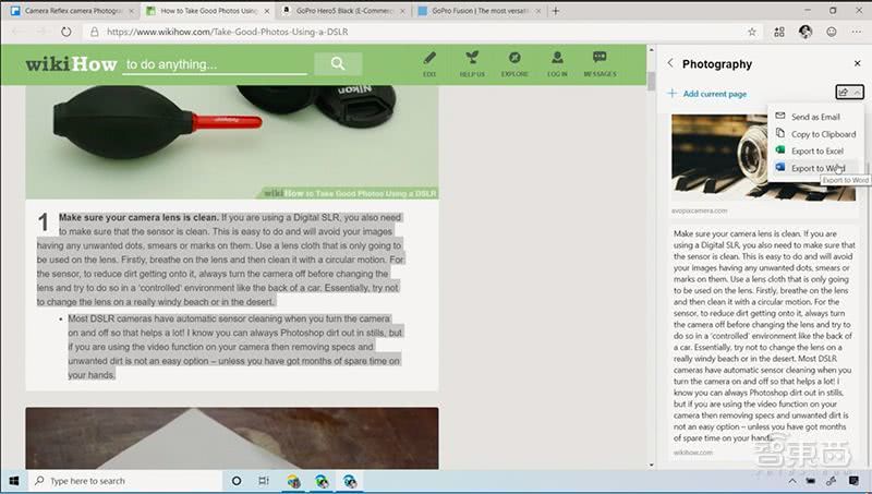 微软Edge浏览器可以非常方便地收集、整理、分享和导出网页上的内容,并与Office 365进行了打通。