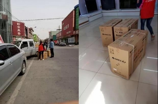而在主营格力空调的任勇力家电商场,商家正在积极安排送装。清明假期第一天的上午,他们的日程是安装8台空调。促销员介绍说,这一批空调主要是三月格力“万人空巷”活动的预定产品,从三月份陆续进行了安装排期;对于四月份新购用户,若不急用,则安排“五一”前后送装。