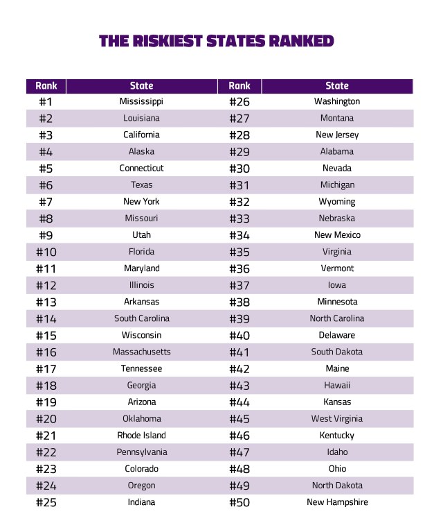 网络上行为最危险的用户分布在密西西比州,路易斯安那州和加利福尼亚州。