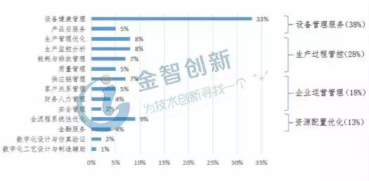资源配置协同占比13%,排在第四位。产品研发设计和制造与工艺管理两方面应用的平台仅占比2%和1%,有待进一步培养发展。
