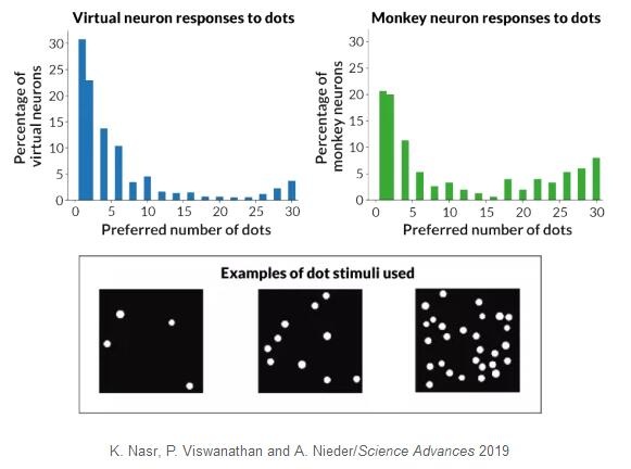 这些人工神经元让人联想到“数字神经”,人们认为“数字神经”赋予人类、鸟类、蜜蜂和其他生物能力来估计一组物品的数量,这种直觉也被称为数字感。