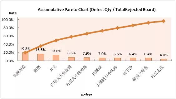 手工记录+电脑录入:记录的方式与上述方法相同,但有专人将手工记录录入到电脑中,并生成 Excel 文件或电子图表(如下表3:xxx 工序总报废柏拉图,当然还会制作更多图表来展现问题,如 Top-x 缺点趋势图等),将录入的数据进行简单可视化处理。众所周知,Excel 对处理的记录数有限(最大行数 1048756),且当数据量超过上百 MB 后,其处理速度将明显变慢;当数据达到 GB 级时,Excel 根本无法处理。再者,电脑录入通常是在隔天进行,所以问题反馈的实时性会更差。