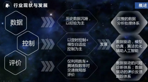 第一技术设施逐渐完善,一些大城市包括一些中等城市的城市道路基础设施可谓“上天入地”,地面+高架+轨道三网一体;第二数据形态逐渐丰富,包括交警+互联网+第三方数据,实现真正的大数据;第三各类技术逐渐成熟,大数据+算力(云计算)+算法,都用到了人工智能;第四政策大力支持,AI+交通实现交通拥堵的治理。