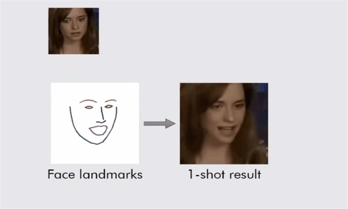 研究人员先是从 YouTube 上搜集的 7000 多张名人照片进行进行面部特征提取,包括脸型、眼睛、嘴型等特征点,通过这些特征点进行的训练去比对拍摄的照片,并让这些拍摄的照片动态头部模型,通过一系列卷积运算让比对效果不断提升,最终在进行前期大量学习训练之后,新的神经网络只需要少量数据和就能生成新的人脸信息甚至是视频。